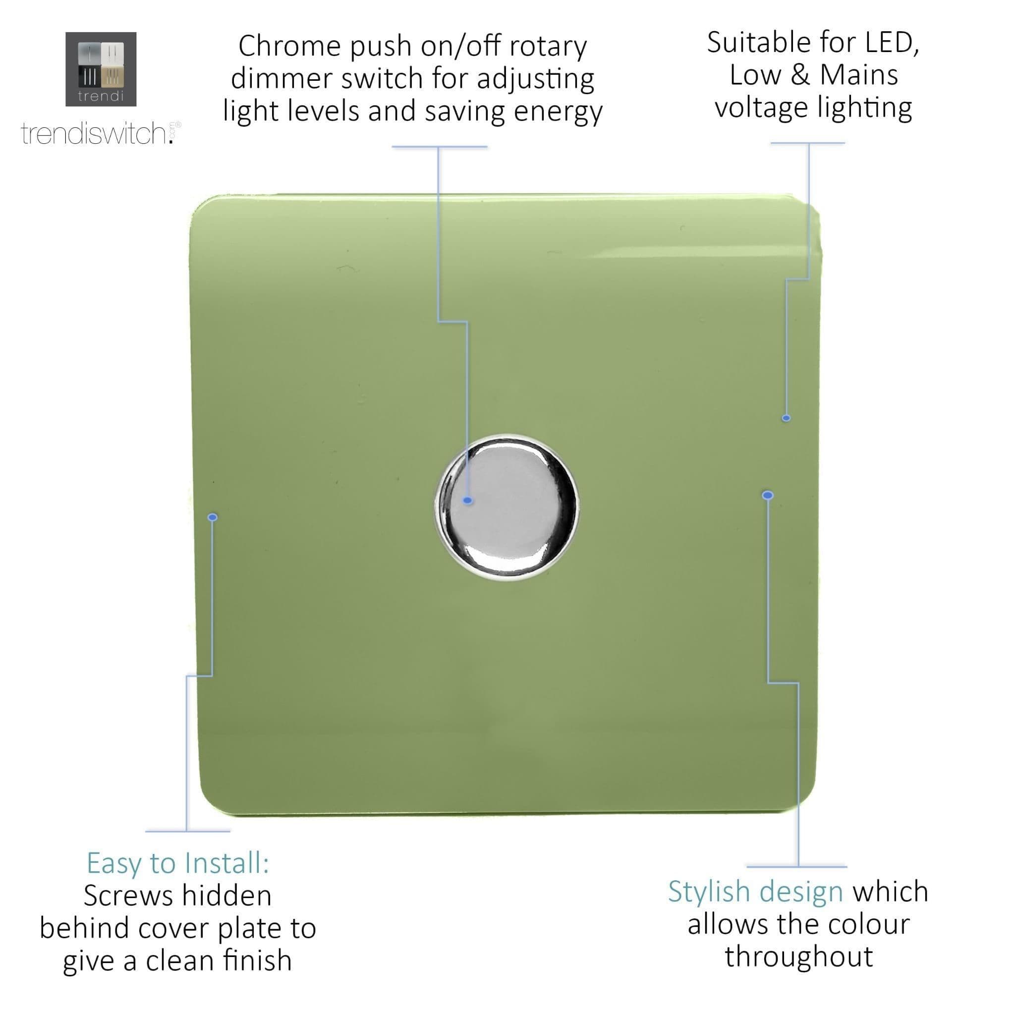 Trendi Switch 1 Gang 1 or 2 way 150w Rotary LED Dimmer Modern Designer Light Switch in Moss Green