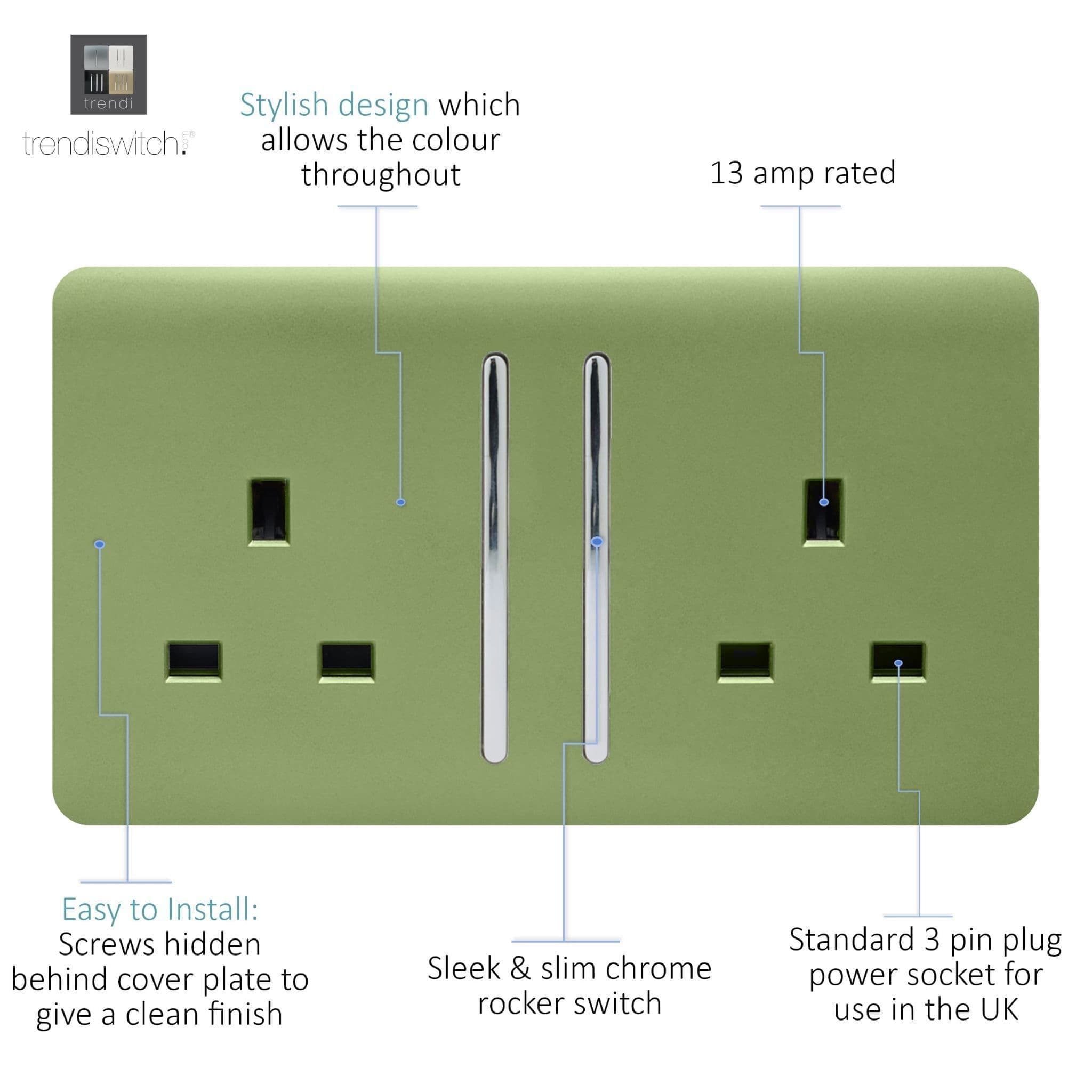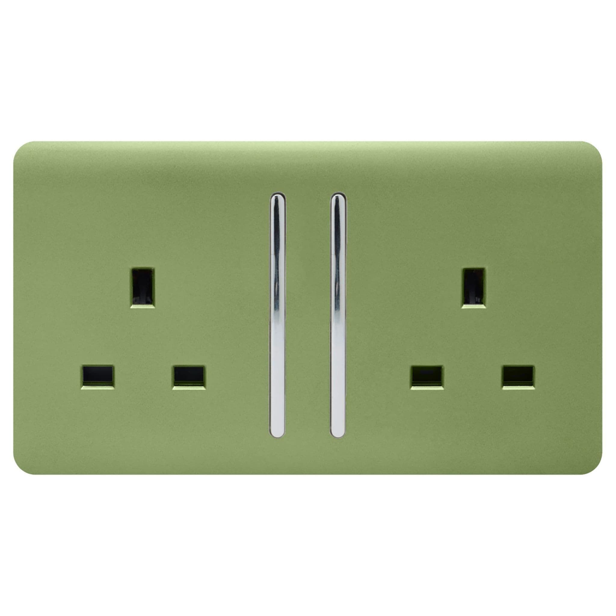 Trendi Switch 2 Gang Moss Green Double Plug Socket Modern Designer Decorative Wiring Accessory